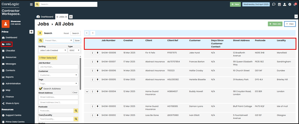 The Jobs list shows you a view of all the Jobs created within Contractor Workspace.