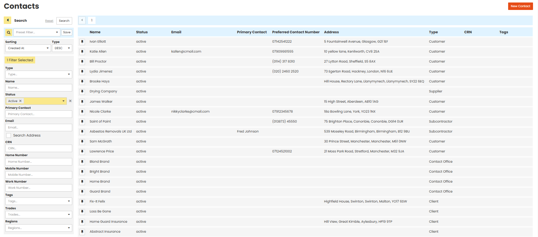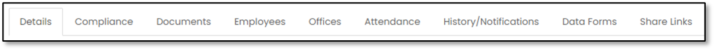 Compliance | You can track a contact’s compliance records and manage the record status and expiry date etc. A Share Link can be created and shared with the contact allowing them to complete the details of their compliance. (if applicable) |