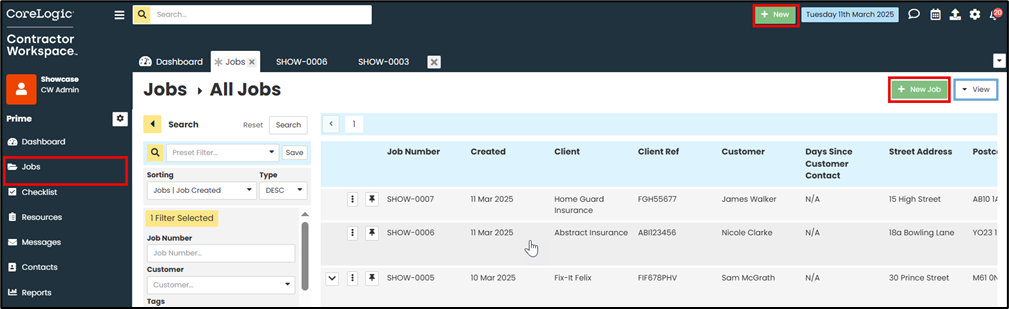 To create a new job, navigate to the ‘Jobs’ in the Contractor Workspace Menu. Click the 'New Job' button.