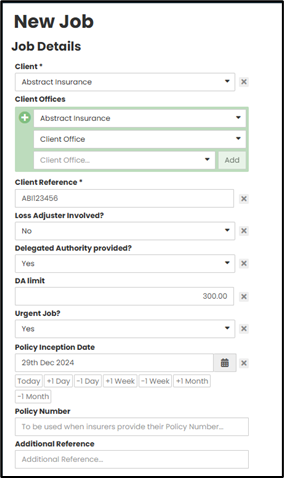 Note - The Client is the party who is sending you the job request, for example an insurance company, loss adjuster or claims management business