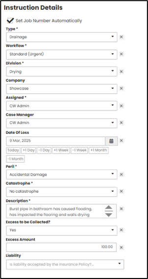 Next, complete the Instructions section, once done select the 'Customer/Property Details' page. The ‘Customer’ is referring to the Insured or the Owner of the property where the repairs are taking place.