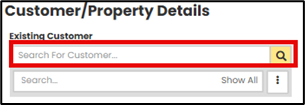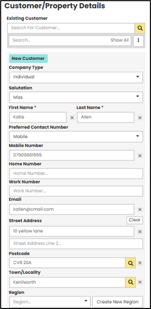 You can use the 'Search Existing Customers' section to select an existing Customer, who may already be in the database. Once customer has been found and selected this will automatically prefill the Customer information.