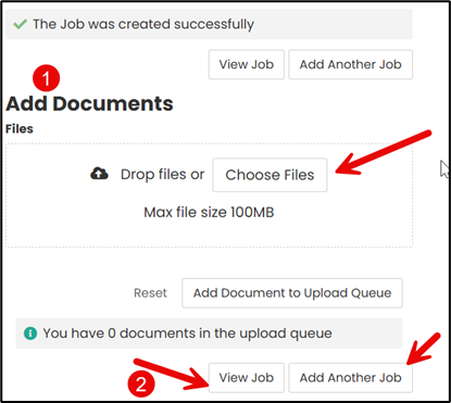 Before you view the job you just created, you have the option to 'Add Documents.'