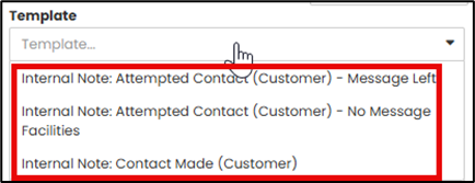 You can select a Template for your note from the drop-down list. Then complete the required information for the Note. All items with an Asterix (*) are mandatory fields.