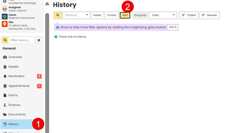 From the Job menu and select ‘History.’ From here you will see all previous SMS that have been sent to the customer.