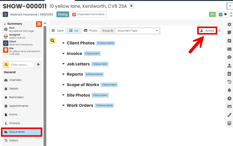 From the main menu select Jobs. Locate the relevant job you wish to upload documents for and click to open the job.
