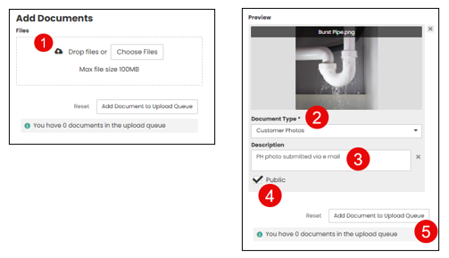 Click the ‘Add Documents to Upload Queue’ button to upload the document to the job.