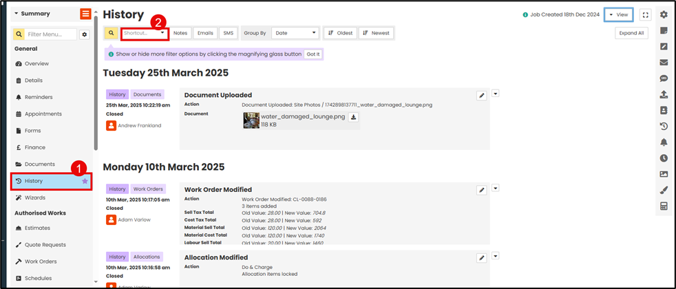 You can also view the Status History, from the ‘View’ drop down menu in the top right-hand corner, select ‘Status History.’