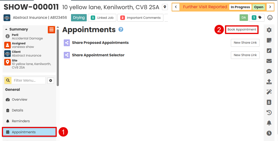 Navigate into the job you want to create the Proposed Appointment for. Select Appointments from the General menu.