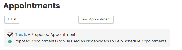 Once the Proposed Appointment is saved you will see it in the list on the Appointments screen. It will be tagged as a Proposed Appointment.