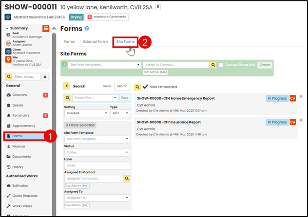 Navigate to your job and then into the Forms tab in the job menu on the left-hand side of your screen