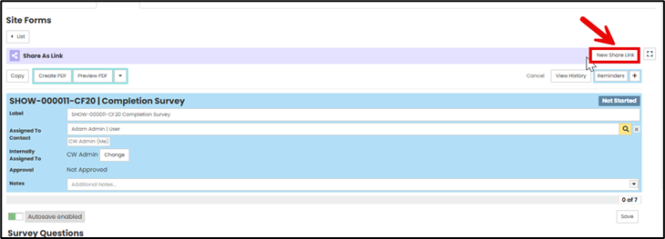 Once you have created the Site Form use the ‘Share As Link’ to create the Share Link, click ‘New Share Link’ button.
