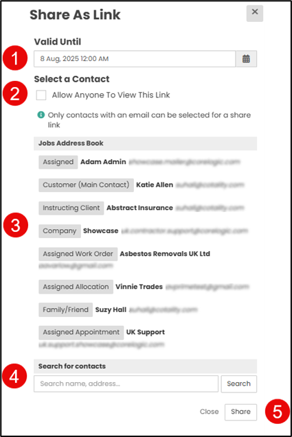 Once you’ve selected the recipients, click Share. This will create the Share Link