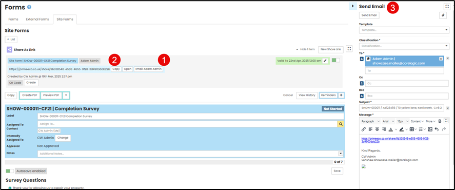 Site Forms can be shared to subcontractors and external parties via a Share Link so they can complete the questions and fields for you and submit it back.