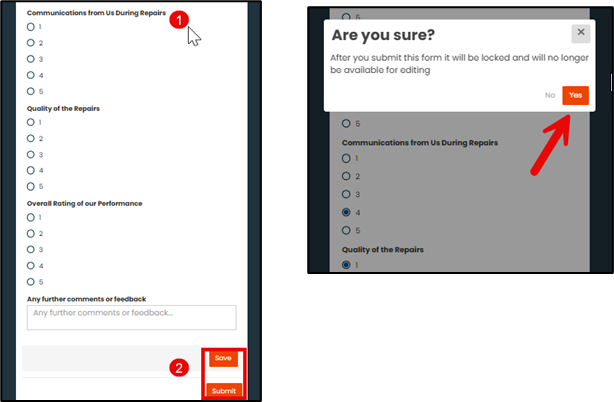 Click ‘Submit’ to finish the site form and send it back to the job owner. The pop up ‘Are You Sure?’ will appear as once the Site Form has been submitted it can not be edited by the external party.