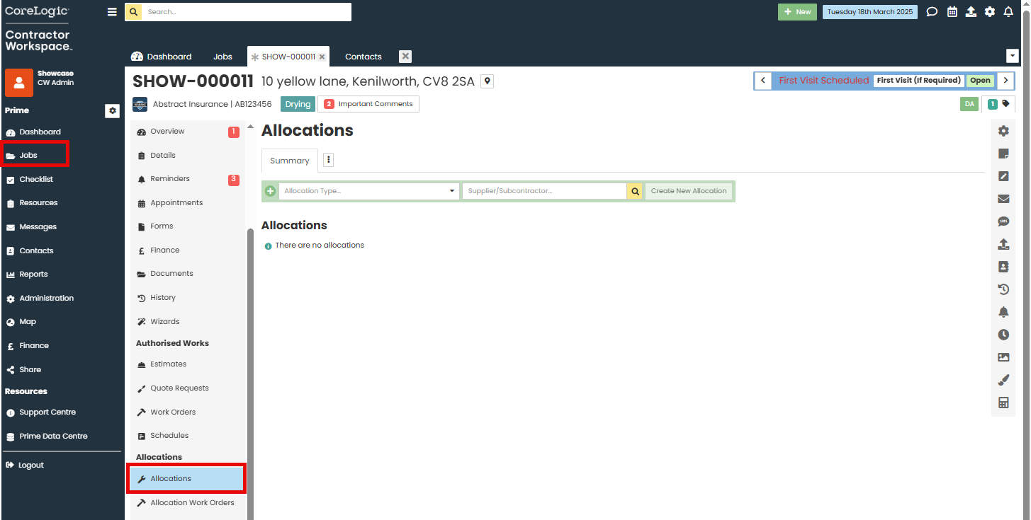 Allocations can be used to assign specific work to external suppliers or internal colleagues. Makesafes and Specialist Requests are two great examples, you can use the Allocation so you can send Work Orders to trades but also have flexibility in being able to adjust the estimate as required.