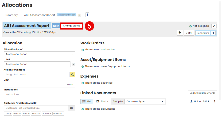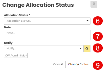 Click Change Status at the top of the allocation page.