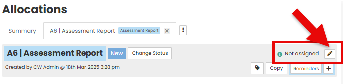 Click the pencil icon on the right-hand side of the screen to assign the allocation to an internal user.