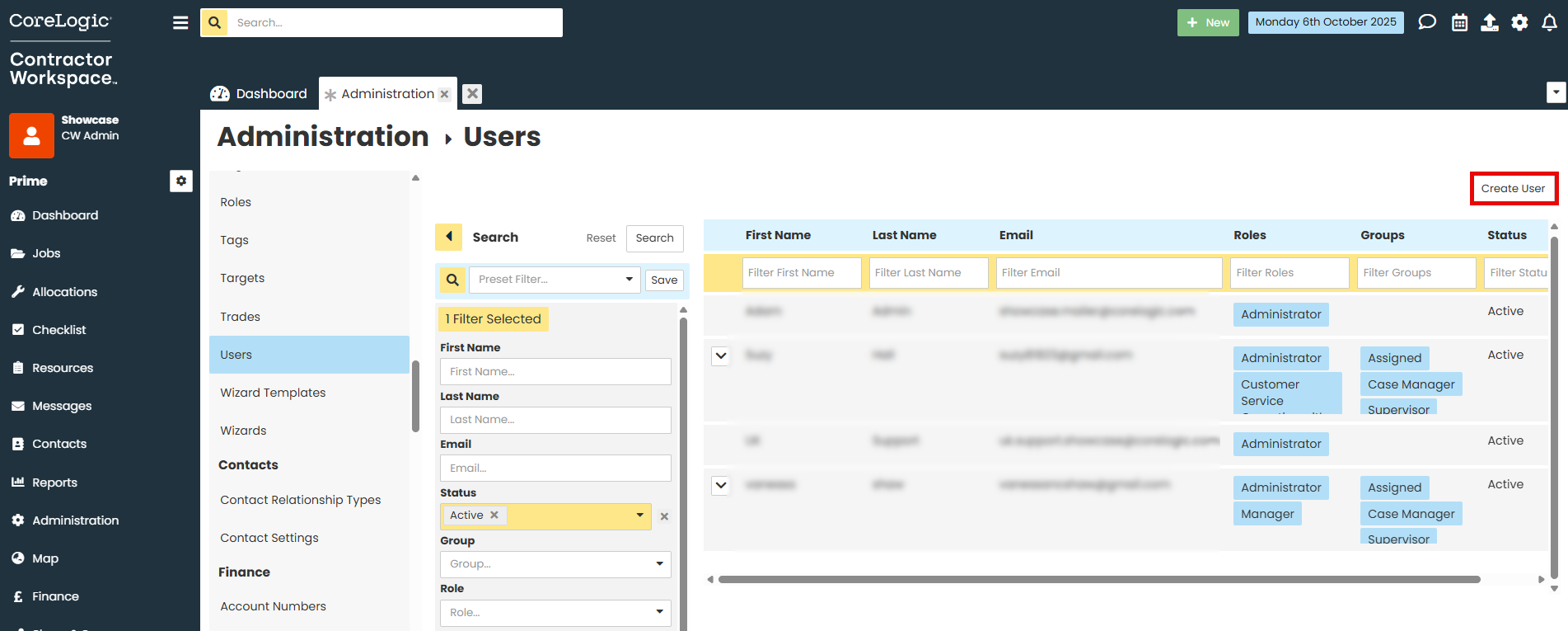 3. At the top right of the screen select Create User, this will take you to the User Details scree