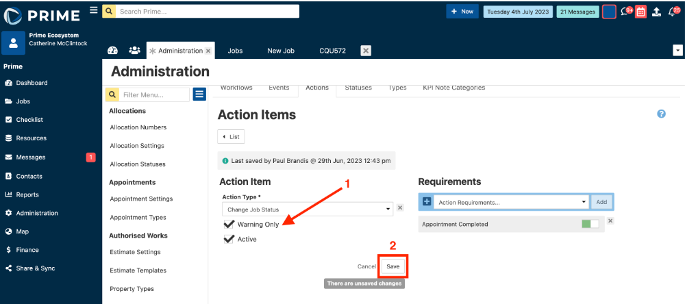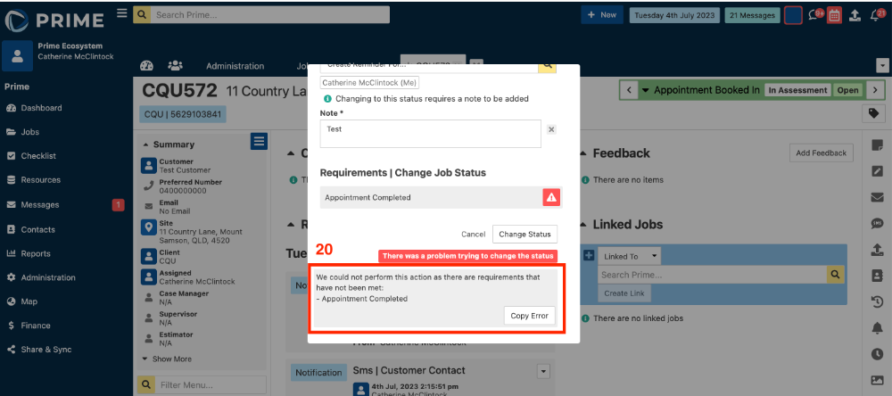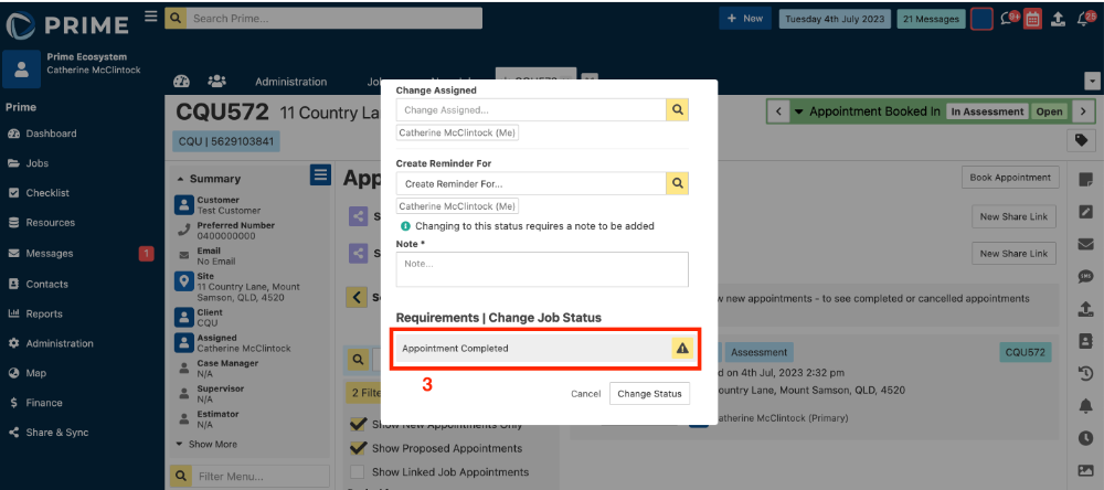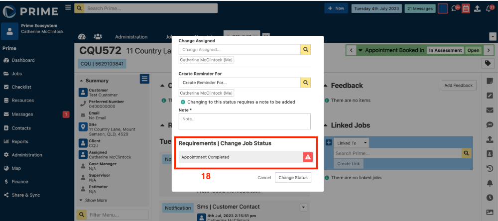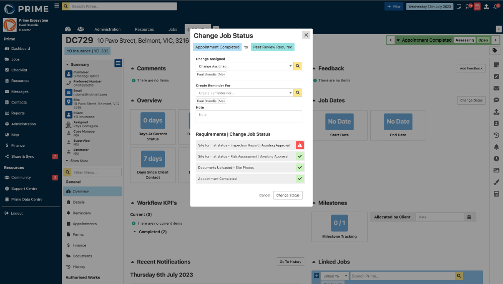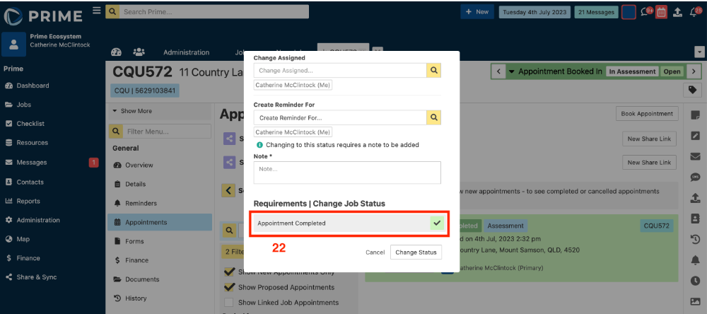 - From a job, when trying to change the status to Appointment Done, there is now a warning that displays if the requirement has not been met.