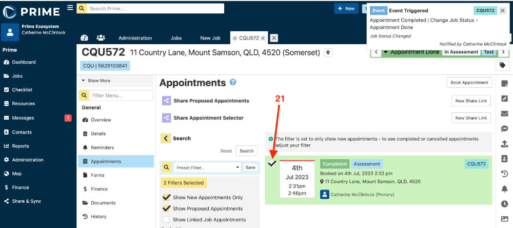 - Complete the requirement of the action, in this case an appointment completed