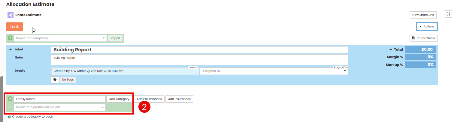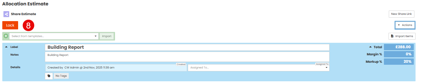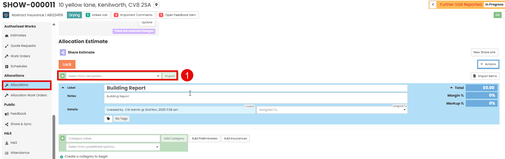 Allocations have their own Estimates, these can be edited when required and Work Orders can be created from the Estimate line items.