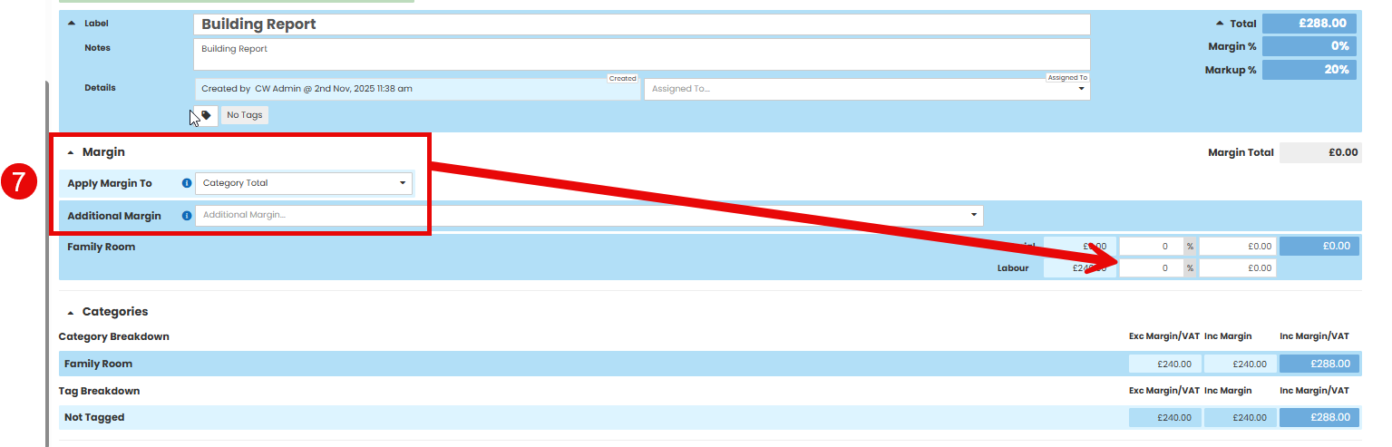 Scroll to the top of the Allocation Estimate and click the Margin drop down to view and adjust the margin percentage being applied to the Estimate.