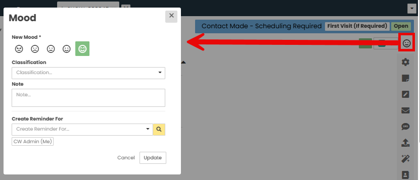 The Mood is also an option to be included in your Customer Job Portal, the customer will be able to set the mood themselves and submit it back to the job. They will not be able to see any mood history or the mood you have set internally.