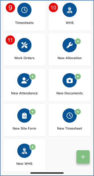 enable you to create a new item, such as a ‘New Allocation, New Timesheet, New Documents, New Attendance, New Site Form and New WHS.’