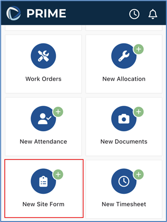 To complete a site form on the app, from the ‘Dashboard’ view, select the ‘New Site Form’ tile.