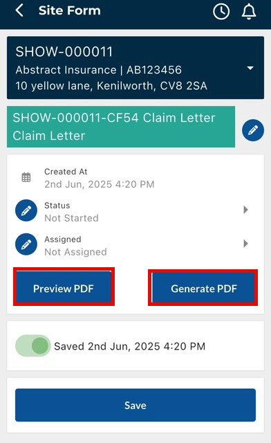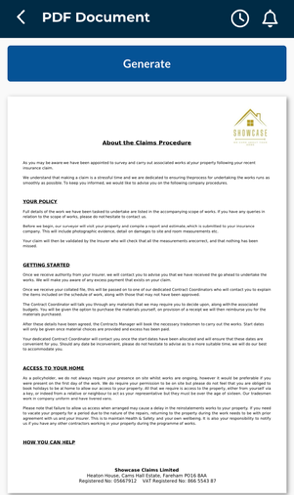 If you select ‘Generate PDF,’ you will be taken to the document page.