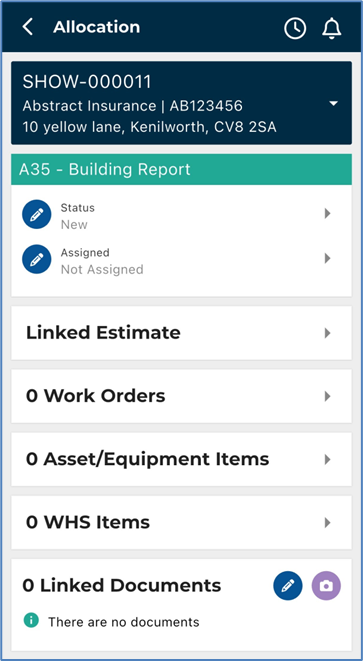 Once you have created the allocation, you will be able to navigate to Linked Estimates, Work orders, Asset/Equipment Items, WHS Items and Linked documents.