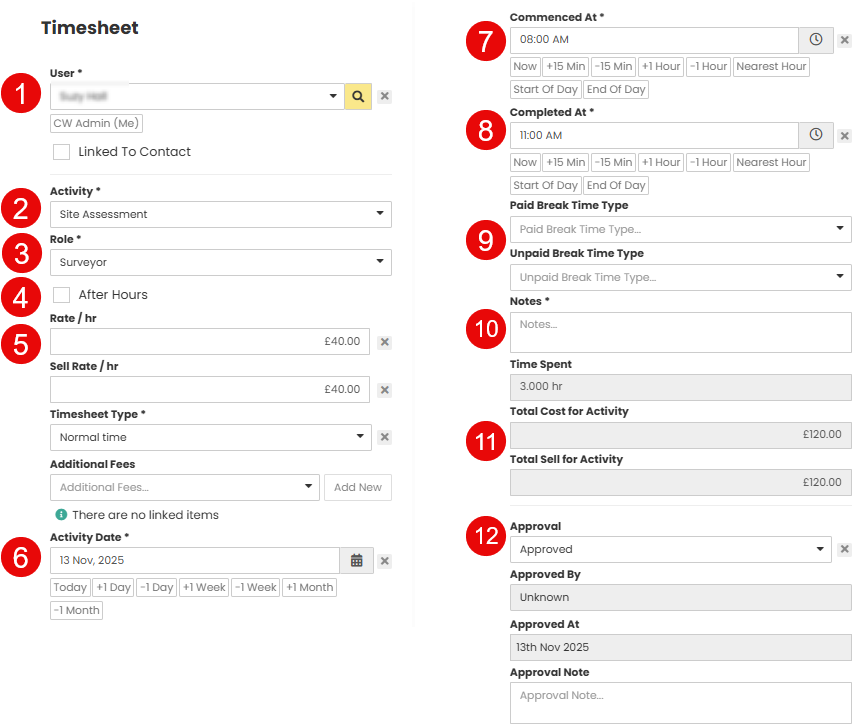 Rate / hr and Sell Rate / hr – complete these fields with the relevant Pound values (if it's not automatically populated).