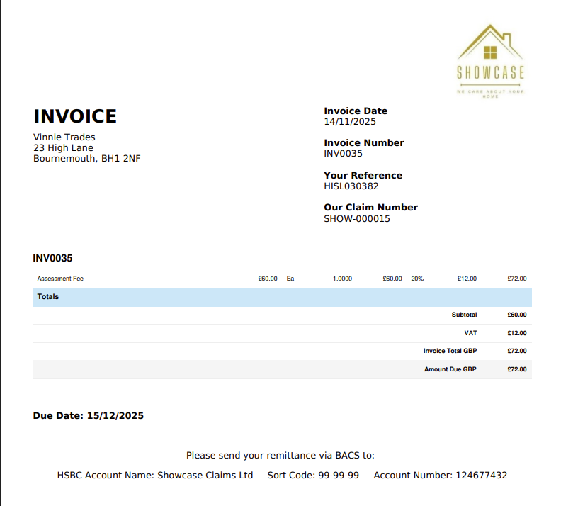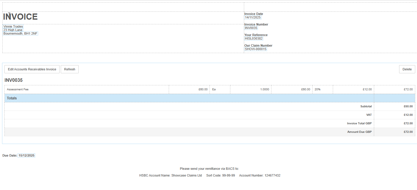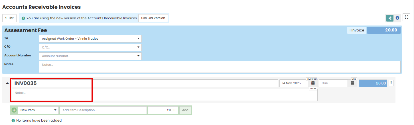 The invoice and invoice number is populated automatically but can be edited if required.