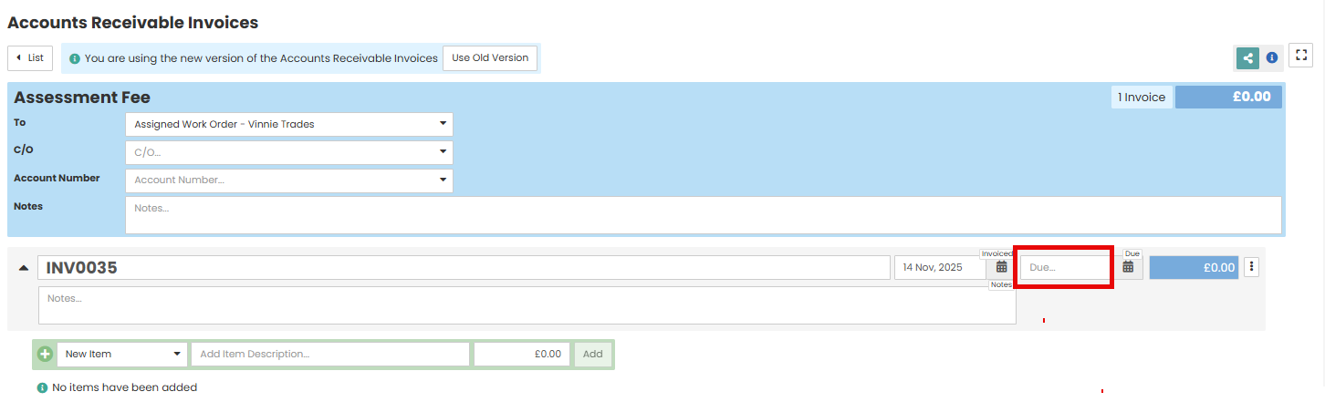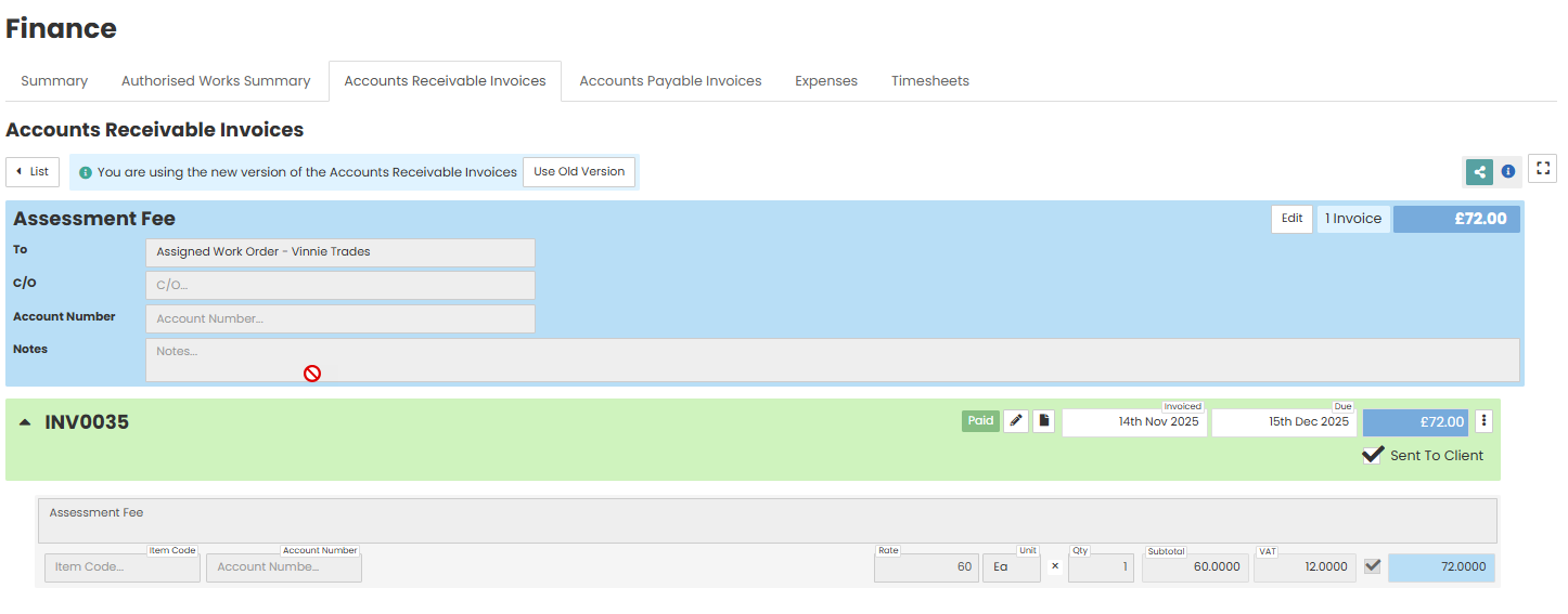 Type (Required) – The type of invoice e.g. authorised works or allocations.