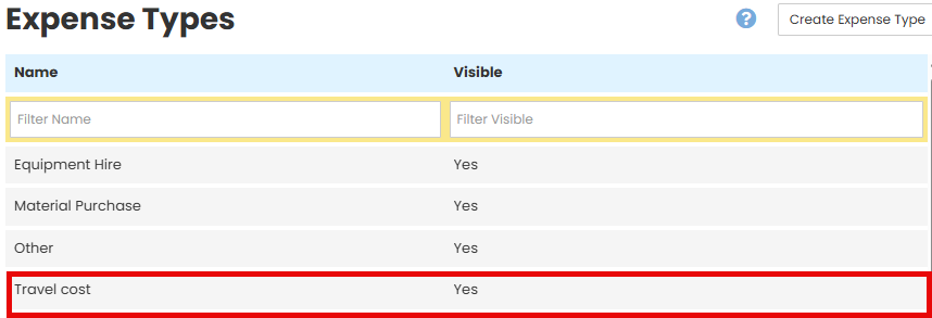 The new Expense Type will now appear in the list and can be used when adding Expenses to Jobs