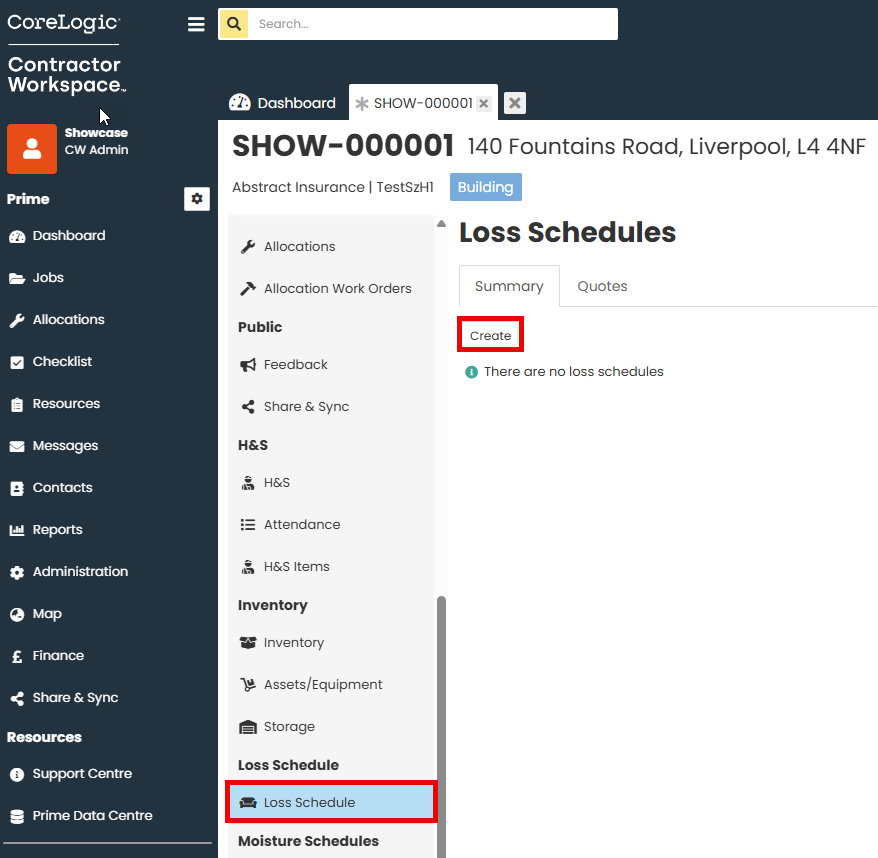 Open the required Job. Select Loss Schedule from the Job Menu.