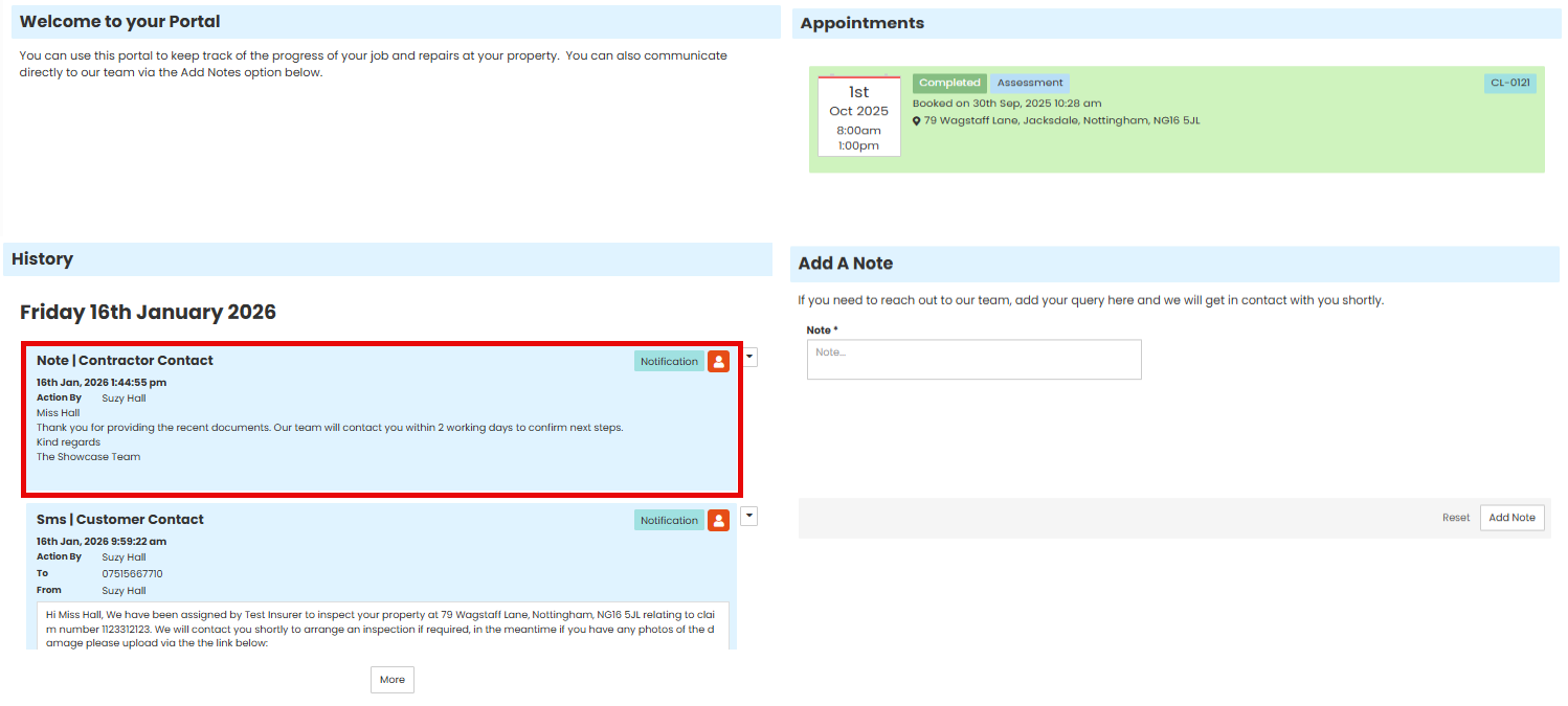 You can send a Job Portal link to a customer which will enable them to view upcoming appointments, share any documents and communicate directly with your team by adding notes.