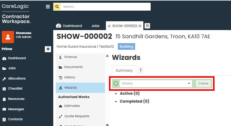 Navigate into the required job and then select the 'Wizards' option from the left hand side job menu.