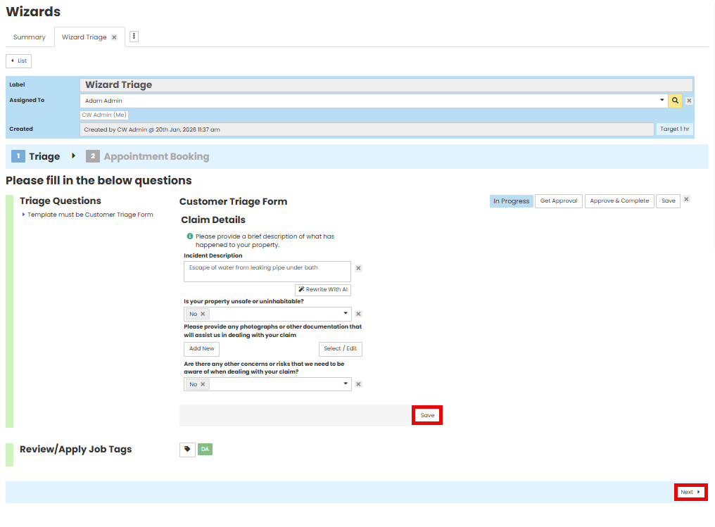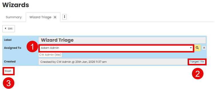 User can follow the below steps to start and complete a Job Wizard. In this example we are using a 'Triage Wizard'.