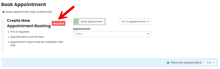 If an item is Required you will see the red tag next to the label. You will then also not be able to proceed through the wizard if a Required item is not complete.