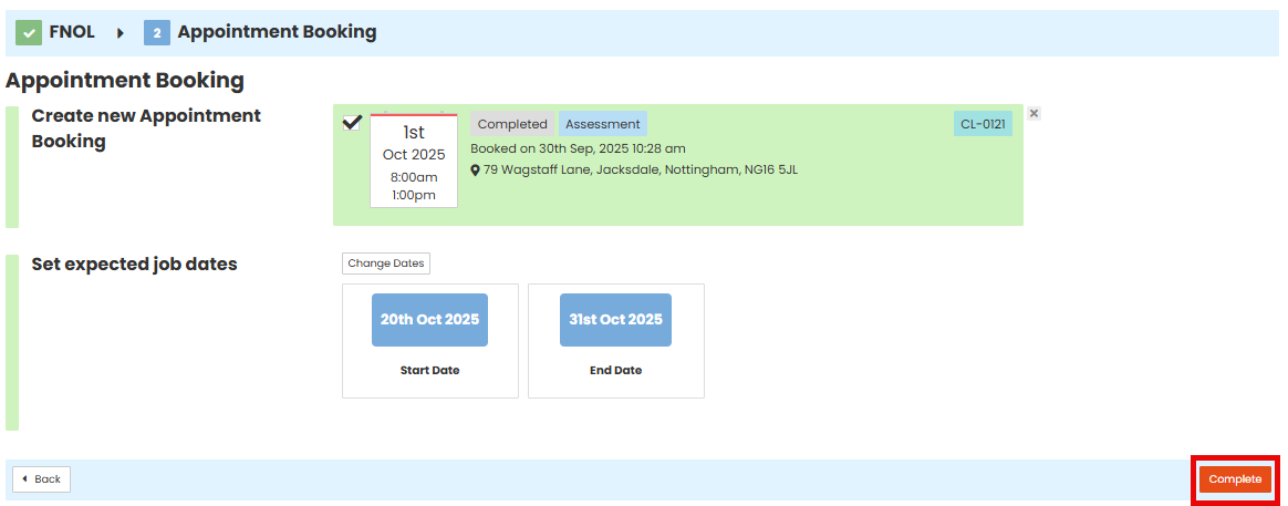 Once all Steps and Items have been finished you will be able to click the 'Complete' button in the bottom right hand corner.