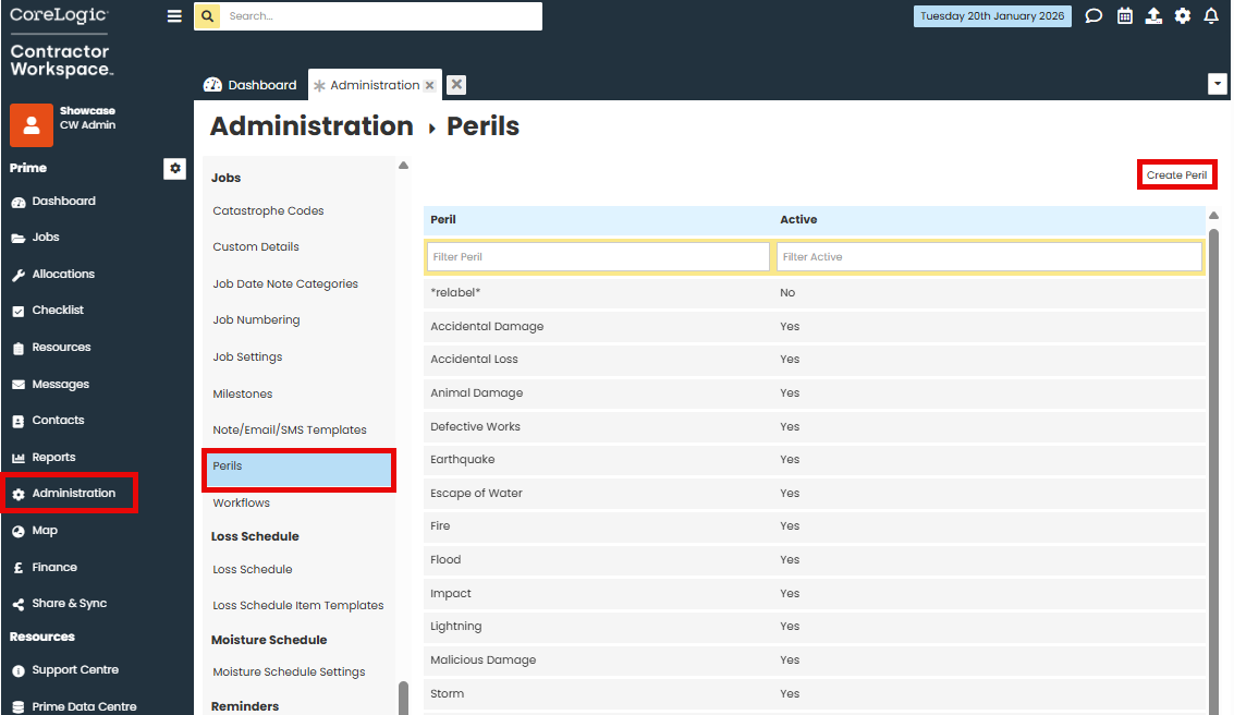In the Jobs section, click on Perils.