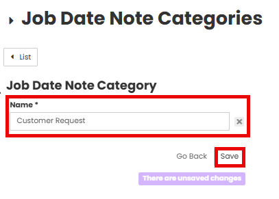 Add A New Job Date Note Category